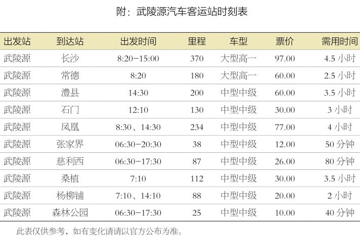 武陵源汽車站發(fā)班表及發(fā)車時(shí)間