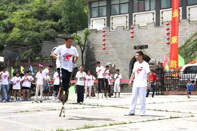 張家界高花燈亦稱高皇燈,是流行于永定沅古坪一帶富有民族特色的舞蹈。表演時,12人至24人不等。配有鑼、鈸、嗩吶、鼓等樂器。每人手中拿一盞紙扎燈籠,內(nèi)點蠟燭兩根,頂扎一木偶像,用五色紙剪成戲文故事如“八仙” 、“瓦崗寨”,“梁山英雄 ”之類。高花燈表演有一套程式,要求東起西落,進一個“半邊月”,出一個“月團圓”,舞個“太極圖”。亦可進民房表演,叫“愿燈”,多為祝福、還愿或為某家喜事湊趣。打吆喝、打口哨則只能到戶外表演,叫“眾燈”,是讓大家看的。其形式又分民燈、戰(zhàn)燈。前者表演 古代先民的遷徙、繁衍、勞動、生活;后者表演打仗破陣。隊形變化有“織籬笆”、滾柱頭”、“十八斗”、“螺螄轉(zhuǎn)頂”、“八卦陣”、“過天星”、“一字長蛇”等二十余種。如破“象棋盤陣”,主人插三十二根香,擺成棋盤陣,表演時,主人舉紅傘,玩燈者舉黑傘,從河道進,將眾“子”一一吃掉(即踩香),這是斗智的競賽。只見燈火如流星般穿插舞蹈 ,旁邊配以龍燈互舞(配龍玩燈,是高花燈的主要特點之一),那激起的鑼鼓聲、吆喝聲、口哨聲,掀起有節(jié)奏的聲浪,熱烈而歡快。 張家界高花燈發(fā)祥于張家界市永定區(qū)沅古坪鎮(zhèn)等地區(qū),與沅古坪地區(qū)接壤的沅陵、桃源、慈利等周邊區(qū)縣也有少量玩高花燈的習(xí)慣。 高花燈的燈代表著光明幸福,12個燈表示12個月,月月平安無事。每年春節(jié),每個村寨都要操練一班高花燈,辭舊迎新。制作時,藝人用竹篾和紙扎糊成12或24個燈籠,在燈籠下加上一個長柄燈托,并在燈籠上扎上五顏六色的“故事”,如“八仙”、“耿氏送子”等。夜晚,在燈籠里點上木油臘燭,一人舉一個燈籠,邊舞邊組成多種隊形。一眼望去,流光閃爍,尤如銀河戲舞。 張家界高花燈不但為本鄉(xiāng)本土的觀眾所喜愛,而且受到海內(nèi)外朋友及國際友人的高度贊賞。因為它是中國古老的民間舞蹈代表,它以自成體系的記譜方法,延繼著中國舞蹈的血脈,以其悠久的舞蹈歷史和多元文化特征,被舞蹈界認為是“中國舞蹈歷史上的活化石”,極具學(xué)術(shù)研究價值和很高的審美價值。已列入全省第一批非物質(zhì)文化遺產(chǎn)保護名錄。 高花燈相傳起源于東漢章帝初年,時“ 中蠻”覃兒健在澧水中下游舉義反漢,與漢軍“戰(zhàn)于洪下”(相傳為今大庸紅土坪,待考),洪下“蠻人”用火 把跳舞為義軍吶喊助戰(zhàn),終因漢軍勢眾,覃兒健與義軍全部戰(zhàn)死(至今留下懸鼓坪、御甲埡、扎營山、烽火臺等古戰(zhàn)場遺跡)。以后,當(dāng)?shù)匦U人每年都必在過 后年(從正月初一至元宵節(jié))打火把集會跳舞, 栽“ 陽樁”(土話栽跟頭),表示對“洪下之戰(zhàn)”的紀(jì)念 。久而久之,火把進化成燈籠和扎人物事故,表演也 有一定規(guī)矩。至今,這種舞蹈藝術(shù)還保留著古老、原始、粗獷、豪放、悲壯的特色。 |