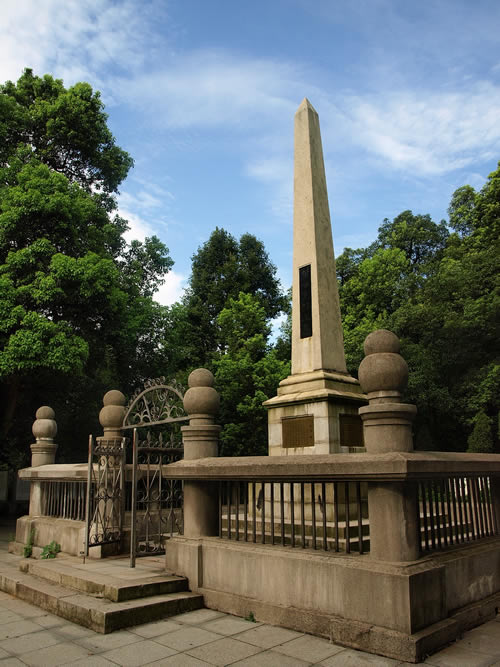 在岳麓山上。墓由三層臺階百余級踏步導(dǎo)入,墓碑為一四棱形的整塊4乳白色巖石琢成,全高約10米,因地處岳麓山高峰開闊處,顯得格外聳拔、挺秀、眺望湘江江,長沙景物盡入眼底。黃光(1874—1916),朱名軫,號杞園,又號克強(qiáng),湖南善化(今長沙)人,辛亥革命重要領(lǐng)導(dǎo)人,史有“孫黃”之稱。1904年組織華興會,翌年8月與孫中山、章太炎等人組織中國同盟會,曾生動并領(lǐng)導(dǎo)欽州、廉州(治今廣西合浦)、鎮(zhèn)獻(xiàn)花(今友誼關(guān))、河口、廣州等地區(qū)反清戰(zhàn)役起義,任民軍戰(zhàn)時總司令。南京臨時政府成立,任陸軍總長。袁世凱稱帝后,任討袁軍總司令。1914年赴美醫(yī)病,1916年病重回國,10月31日于上海病故,時年43歲,次年移柩長沙,國葬于岳麓山。為全國重點(diǎn)文物保護(hù)單位。