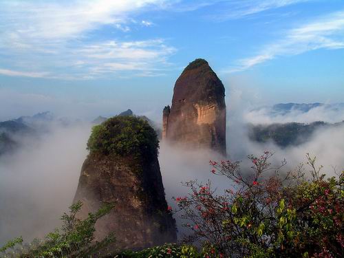 | 莨山,位于湖南省新寧縣境內(nèi)。南與桂林相連,北與張家界呼應(yīng),是國內(nèi)最為典型的丹霞地貌風(fēng)景區(qū),是國家重點風(fēng)景名勝區(qū),又是國家地質(zhì)公園,總面積108平方公里,轄紫霞峒、 扶夷江、駱駝峰、牛鼻寨、八角寨五大景區(qū),地質(zhì)結(jié)構(gòu)奇特,山、水、林、洞渾然一體。境內(nèi)有形神兼?zhèn)涞膶④娛⑽┟钗┬さ鸟橊劮、鬼斧神工?天下第一巷"、地造天設(shè)的鯨魚鬧海、氣勢磅礴堪稱亞洲第一的天生橋、高聳入云而又十分逼真的辣椒峰,這便是嘆為觀止的莨山六絕,這是大自然對莨山的恩賜,每一絕都舉世無雙。莨山還生長繁衍著銀杉、珙桐、華南虎、云豹、靈貓、大鯢等珍稀動植物,也為莨山的天然景色增添了無限靈動與生氣。這里出土有10萬年前的獼猴頭骨化石,有4500年前的新石器文化遺址,有清化農(nóng)民起義的寨堡,有晚清重臣劉坤一、劉長佑、江忠源的宗祠、墓葬,有異彩紛呈的民族風(fēng)情,有膾炙人口的華采詩賦,明代縣人陳永猷留下了"夫夷(新寧古稱)勝景天成就,攝杖歸來入夢頻"的美譽,著名詩人艾青留下了"桂林山水甲天下,莨山山水賽桂林"的喟嘆。