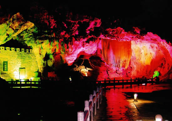 | 奇梁洞位于縣城北四公里處,屬典型的碳酸鹽巖洞,該洞以奇、秀、闊、幽四大特色著稱。洞長6000余米,共分五大景區(qū):即古戰(zhàn)場、畫廊、天堂、龍宮和陰陽河。洞中有山,奇梁洞圖片山中有洞,洞洞相連。它集奇巖巧石,流泉飛瀑于一洞,由千姿百態(tài)的石筍、石柱、石鐘乳構成了一幅幅無比瑰麗的畫卷。一條小溪穿洞而過,水流平緩,燈光打在巖壁上,皺襞倒影在水中,如夢如幻。巖洞用五光十色的霓虹燈打在石筍、石幔及石花上,營造出一個流光溢彩的世界。在洞內有一大廳,據(jù)傳是苗民糾集的地方,廳里立著一塊帶一個小孔的石頭,對著小孔“嗚嗚”地吹,整個大廳會回蕩著低沉的號角聲,當年的苗民就是用這種方式傳令的。