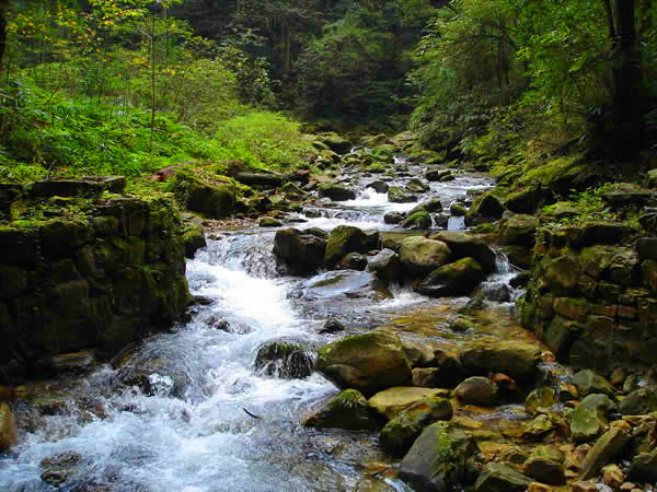 杉刀溝盡頭,有一抹泉水從200多米高的崖頂飄然而下,仿佛一匹白色長練自天而降。飛瀑下臨深潭,綠水泱泱,水霧漫漫,睛雨交加之日,時(shí)有彩虹飛升。每當(dāng)山洪瀑發(fā),瀑布猶如一巨龍,飛騰傾瀉,聲若巨雷,蔚為壯觀。