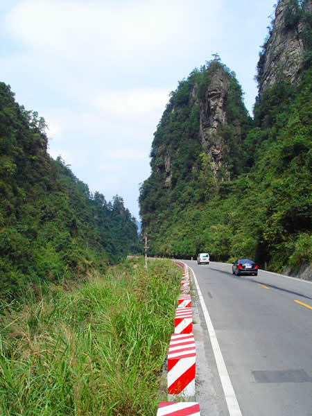 百丈峽圖片 百丈峽是武陵源風景名勝區(qū)通往張家界市的公路貫通整個峽谷,因有堵高近百丈的石壁,直插云霄,不敢仰視,故而得名。據(jù)《慈利縣志》載,索溪峪右得百丈峽,峽長三十公里……又相傳向王天子起義軍與官兵在此先后博殺一百仗,依此又名百仗峽。明代九永兵備胡桂芳,一生好游歷山川,來到百丈峽后題寫了一首七言詩:“峽高百丈洞云深,要識桃源此處尋;戎旅徐行風雪緊,誰將興盡類山蔭。”刻于峽內道旁石壁上。