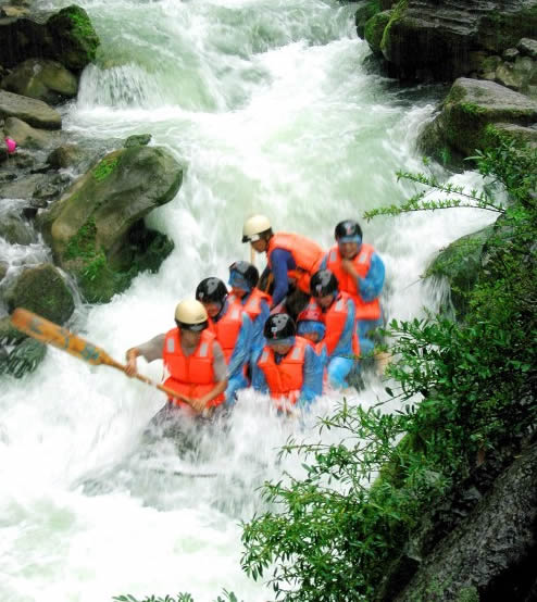 西門峽 西門峽漂流全程6公里,屬萬溶江流域,它發(fā)源于兩頭羊自然保護區(qū)的群山之中;沿途危崖夾峙,樹木蔥榮,水質清澈、急流、險灘星落棋布。共有虎跳澗、白龍灘、臥龍灘、青龍峽、鬼見愁、龍王灘等急流險灘30余個。其中以青龍灘最為著名,它全長400米,落差20余米。它和龍王灘一道堪稱國內漂流之經典。
