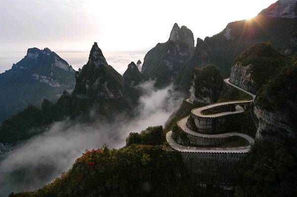 張家界天門山公路非常險峻,比原來通往湘黔要道的矮寨公路還險很多,而且造價非常驚人。整個公路全長約10公里,每米造價約10000元人民幣(約相當(dāng)于高速公路的單位價格)。故整個天門山盤山公路的造價已超過了1億人民幣。