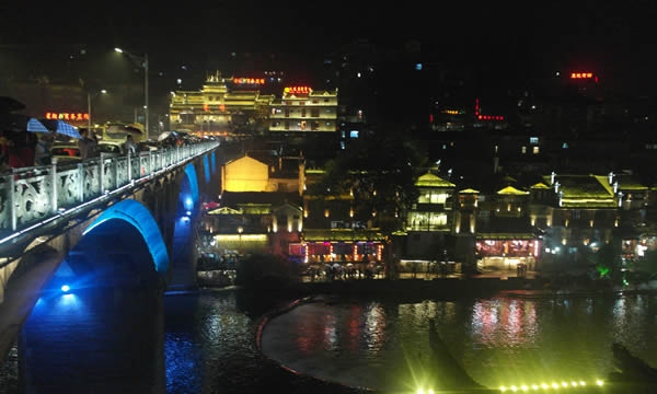 鳳凰古城是國家歷史文化名城,曾被新西蘭著名作家路易艾黎稱贊為中國最美麗的小城。這里與吉首的德夯苗寨,永順的猛洞河,貴州的梵凈山相毗鄰,是懷化、吉首、貴州銅仁三地之間的必經之路。作為一座國家歷史文化名城,鳳凰的風景將自然的、人文的特質有機融合到一處,透視后的沉重感也許正是其吸引八方游人的魅力之精髓。這座曾被新西蘭作家路易艾黎稱作中國最美麗的小城之一的“鳳凰古城”建于清康熙時,這顆“湘西明珠”是名副其實的“小”,小到城內僅有一條像樣的東西大街,可它卻是一條綠色長廊。